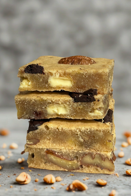 Piecz w 175°C przez 18–20 minut. Nie przejmuj się, że wygląda jak zakalec – blondie właśnie takie ma być. Przed krojeniem koniecznie je ostudź.