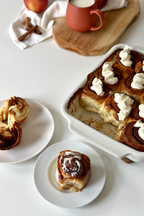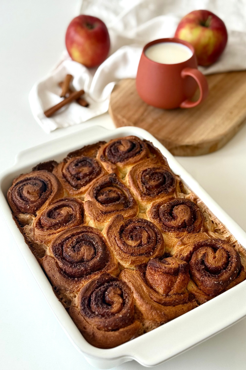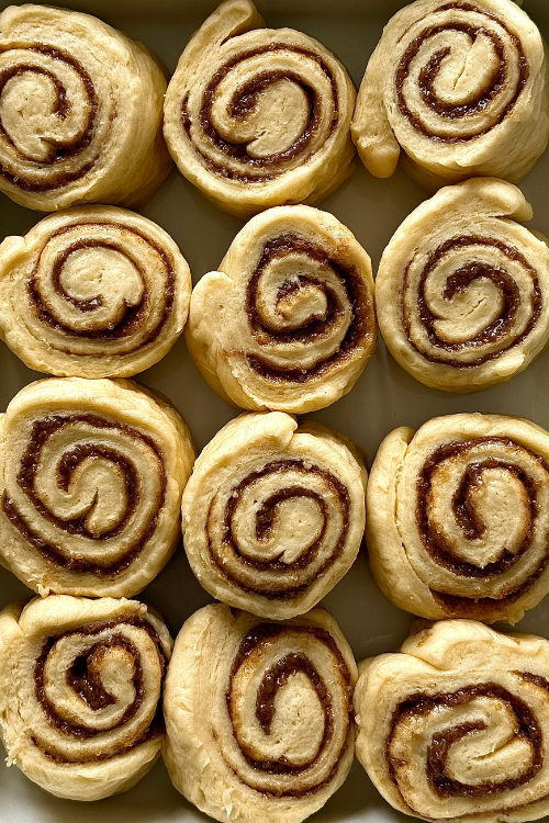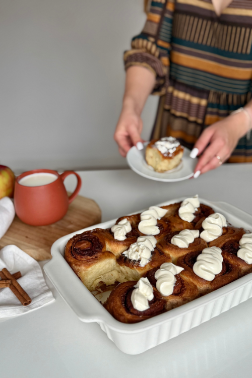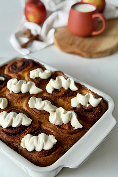Piekarnik nagrzewamy do 180°C. Wyrośnięte cynamonki polewamy śmietanką 30%. Pieczemy przez około 25 min.