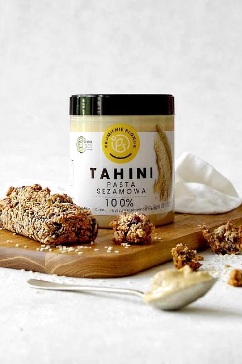 Pasta sezamowa tahini to drzwi do zupełnie nowych smaków. Przygotujesz z nią pyszny hummus, tradycyjną chałwę czy babę ghanoush. Dodaj ją również do sosów, dipów, makaronów czy sałatek. Nie bój się jej stosować w deserach: puddingach, ciasteczkach, domowych batonach. Niektórzy używają tahini zamiast masła, jako smarowidło do pieczywa, a nawet element zagęszczający zupy. Na naszym blogu znajdziesz między innymi przepis na tahini rolls oraz przepis na makaron z suszonymi pomidorami i tahini.