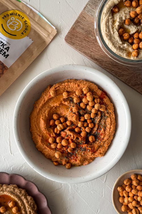 Jeśli masz ochotę na coś prostego, a jednocześnie efektownego do kanapek, warzyw czy pity, hummus sprawdzi się idealnie. W tym przepisie z jednej podstawowej bazy powstają aż trzy warianty: klasyczny, paprykowy i z suszonymi pomidorami. To świetny sposób, żeby przygotować większą porcję na kilka dni i za jednym razem dopasować smaki do różnych okazji - od szybkiej przekąski po dodatek do deski na spotkanie.