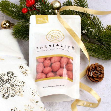 Jeśli szukasz słodkiej przekąski lub czegoś ciekawego na upominek, jesteś w idealnym miejscu. Chrupiący migdał otoczony kremową czekoladą i lekko kwaskowym pudrem z malin to niesamowite połączenie smakowe, które przypadnie do gustu niejednej osobie.