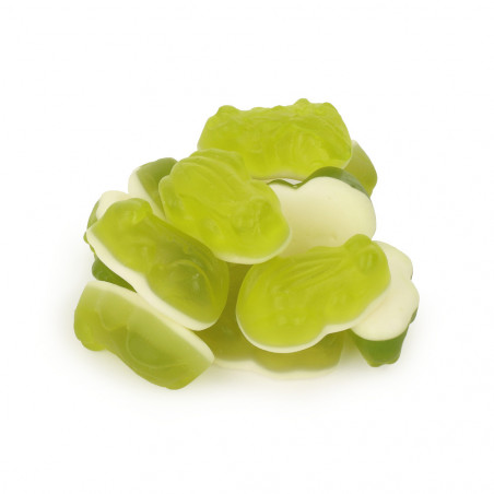 Żelki zielone żabki to urocze, owocowe żelki w kształcie małych, zielonych żabek. Charakteryzują się one delikatną konsystencją i intensywnym, orzeźwiającym smakiem, który na długo pozostaje w pamięci. Te zabawne smakołyki nie tylko świetnie wyglądają, ale również doskonale smakują, co czyni je idealnym wyborem na słodką przekąskę w każdej chwili.
