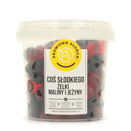 Promyczku, czas na owocową ucztę! Poznaj Coś słodkiego: Żelki maliny i jeżyny – smakowite żelki, które wyglądają jak prawdziwe owoce i zachwycają naturalnym, owocowym aromatem. Te urocze słodkości to prawdziwa gratka dla każdego żelkożercy.