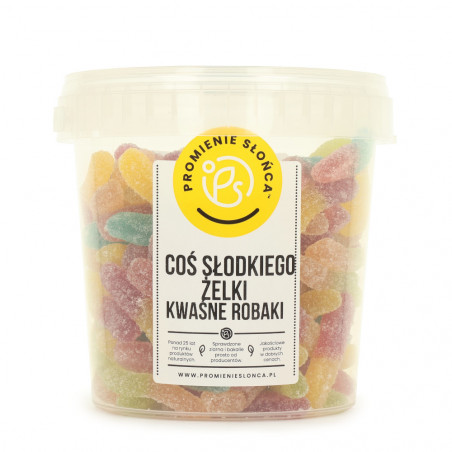 Żelkożerco, przygotuj się na kwaśną przygodę! Poznaj Coś słodkiego: Żelki kwaśne robaki – kolorowe, intensywne w smaku żelki, które zaskoczą Cię swoją wyrazistością. Te kwaśne smakołyki w kształcie robaków to prawdziwa gratka dla fanów oryginalnych słodkości, które łączą w sobie słodycz z kwaskowatym uderzeniem.