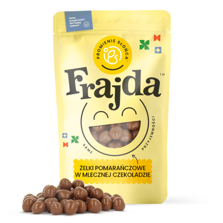 Żelki pomarańczowe w mlecznej czekoladzie z Promieni Słońca to smaczna przekąska idealna dla osób, które lubią pomarańczowo-czekoladowe połączenia. Nasze żelki można wyjadać bezpośrednio z torebki, ale są fantastyczne do ozdabiania ciast czy deserów. Można je wykorzystać także do przygotowania sałatki owocowej, jako delikatny czekoladowy akcent. Wraz z mini piankami stanowią wyśmienity dodatek do zimowej gorącej czekolady.