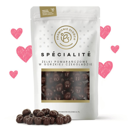 Nasze żelki pomarańczowe w gorzkiej czekoladzie to smaczna przekąska idealna dla osób, które lubią pomarańczowo-czekoladowe połączenia. Niektórzy wyjadają je bezpośrednio z torebki, ale są też idealne do ozdabiania ciast czy deserów - mogą się szczególnie przydać w okresie świątecznym. Ciekawą propozycją jest dodanie żelek pomarańczowych w gorzkiej czekoladzie do sałatki owocowej, jako delikatny czekoladowy akcent. Wraz z piankami, na przykład piankami “Malinowe Serduszka”, stanowią wyśmienity dodatek do gorącej czekolady.