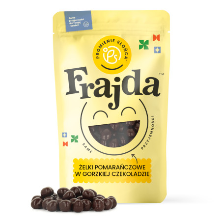 Nasze żelki pomarańczowe w gorzkiej czekoladzie to smaczna przekąska idealna dla osób, które lubią pomarańczowo-czekoladowe połączenia. Niektórzy wyjadają je bezpośrednio z torebki, ale są też idealne do ozdabiania ciast czy deserów - mogą się szczególnie przydać w okresie świątecznym. Ciekawą propozycją jest dodanie żelek pomarańczowych w gorzkiej czekoladzie do sałatki owocowej, jako delikatny czekoladowy akcent. Wraz z piankami, na przykład piankami “Malinowe Serduszka”, stanowią wyśmienity dodatek do gorącej czekolady.