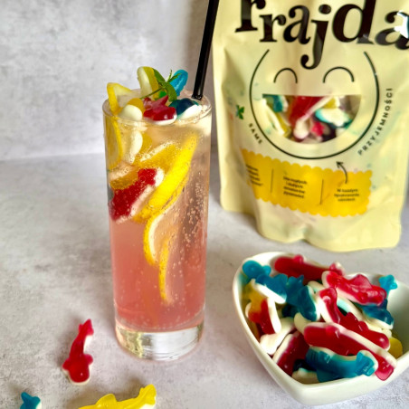 Hej żelkożerco! Mamy coś, co na pewno przypadnie Ci do gustu – nasze żelki kolorowe rekiny! Te małe, kolorowe słodkości w kształcie rekinów to prawdziwa uczta dla zmysłów. Każdy żelek to mieszanka intensywnych owocowych smaków i soczystych kolorów, które sprawią, że Twoje podniebienie zatańczy z radości.