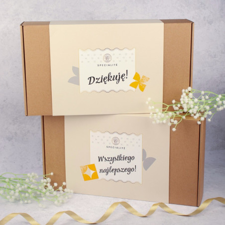 Urocze pudełko, skrywające wewnątrz słoiczki z pysznościami. Porzeczki oraz migdały otoczone najlepszym rodzajem czekolady, rozpływają się w ustach! Zestaw Dziękuję! jest nie tylko pyszny, ale i praktyczny. Piękne opakowanie może stanowić ozdobę wystroju, a wygodne słoiczki warto później wykorzystać.