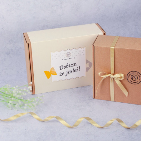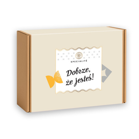 Urocze pudełko, skrywające wewnątrz słoiczki z pysznościami. Porzeczki oraz migdały otoczone najlepszym rodzajem czekolady, rozpływają się w ustach! Zestaw Dobrze, że jesteś! jest nie tylko pyszny, ale i praktyczny. Piękne opakowanie może stanowić ozdobę wystroju, a wygodne słoiczki warto później wykorzystać.