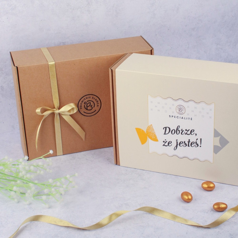 Zestaw Dobrze, że jesteś! jest świetną opcją prezentową w ramach Dnia Matki czy na urodziny lub z jakiejkolwiek innej okazji, a nawet bez okazji. Urocze opakowanie i dwa rodzaje słodkości z pewnością nie zawiodą, szczególnie jeśli lubisz bakalie w czekoladzie.