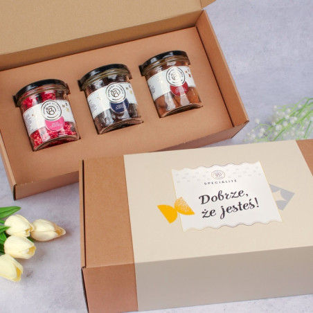 Produkt może zawierać: orzechy ziemne, inne orzechy, sezam, gluten, soję, mleko, gorczycę.