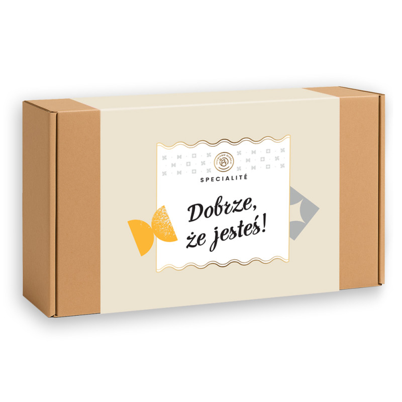 Zestaw Dobrze, że jesteś! jest świetną opcją prezentową w ramach jakiejkolwiek okazji, a nawet bez okazji. Urocze opakowanie i trzy rodzaje słodkości z pewnością nie zawiodą, szczególnie jeśli lubisz bakalie w czekoladzie.