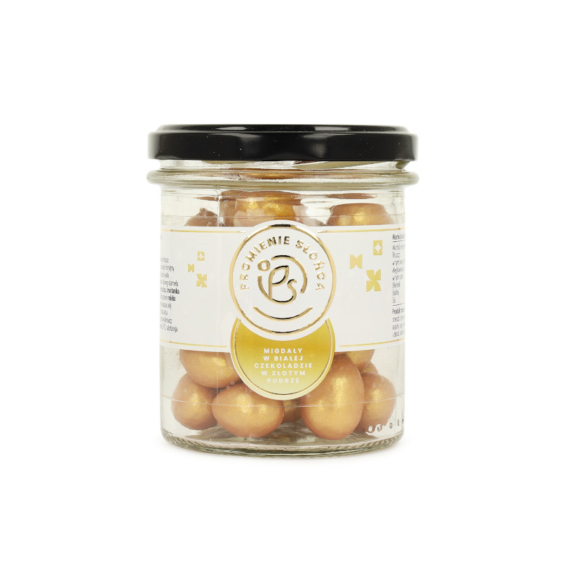 Złote migdały w białej czekoladzie ze słonym karmelem w słoiczku 180 g