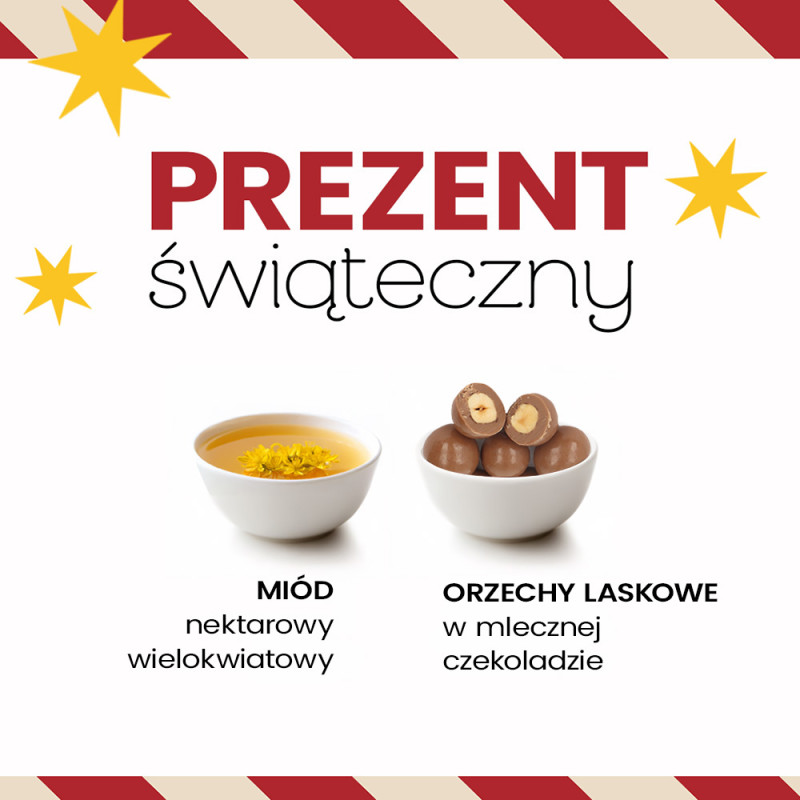 To idealny pomysł na świąteczny prezent dla miłośników klasyki i naturalnych smaków. Miód przynosi ciepło i łagodność, a orzechy w czekoladzie dodają przyjemnej nuty deserowej. Każdy produkt zamknięty w szklanym słoiczku prezentuje się elegancko i z klasą, tworząc upominek, który zachwyci zarówno smakiem, jak i estetyką.
