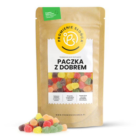 Produkty z Promieni Słońca polecamy trzymać w szczelnie zamkniętym opakowaniu, suchym, chłodnym miejscu bez dostępu do bezpośredniego promieniowania słonecznego. Zachęcamy, aby korzystać z oryginalnej torebki, która jest przystosowana do przechowywania żywności. Żelki można ewentualnie przełożyć do własnego szczelnego pojemnika, najlepiej szklanego.