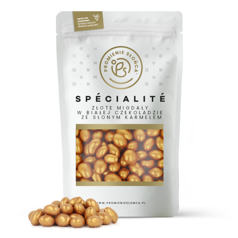 Złote migdały w białej czekoladzie ze słonym karmelem 200 g
