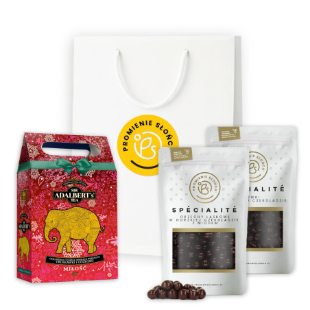 Ten zestaw prezentowy to połączenie aromatu, słodyczy i głębokich zimowych smaków, idealne na chłodne dni, świąteczne spotkania i wszystkie momenty, w których chce się komuś podarować coś wyjątkowego. To upominek, który tworzy atmosferę bliskości, ciepła i przyjemności — idealny dla bliskiej osoby, rodziny, znajomych czy jako elegancki gest w relacjach biznesowych.