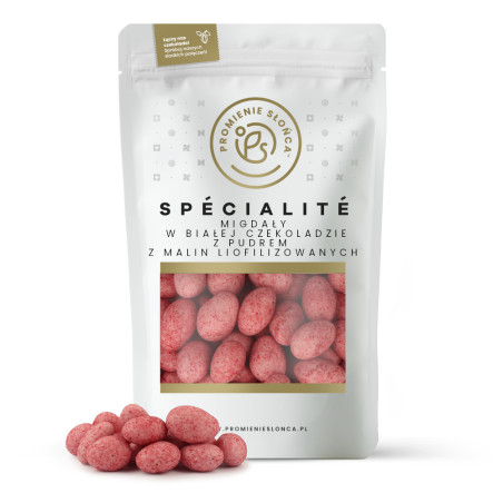 Migdały w białej czekoladzie z pudrem z malin liofilizowanych 200 g