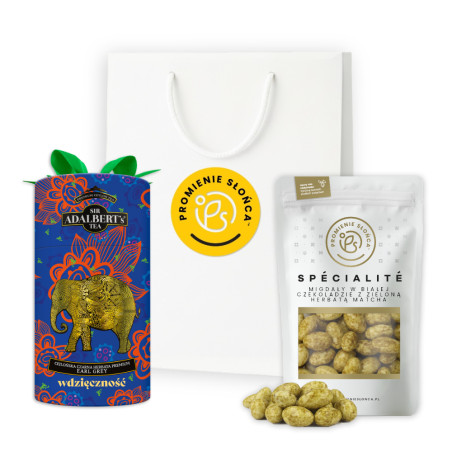 Ten zestaw prezentowy to subtelna, harmonijna propozycja stworzona z myślą o tym, by wyrazić wdzięczność w piękny, smakowity sposób. Łączy w sobie aromatyczną herbatę i wyrafinowaną słodycz w estetycznej oprawie, tworząc prezent idealny na święta, mikołajki, zimowe spotkania czy jako miły gest uznania dla bliskiej osoby lub współpracownika.