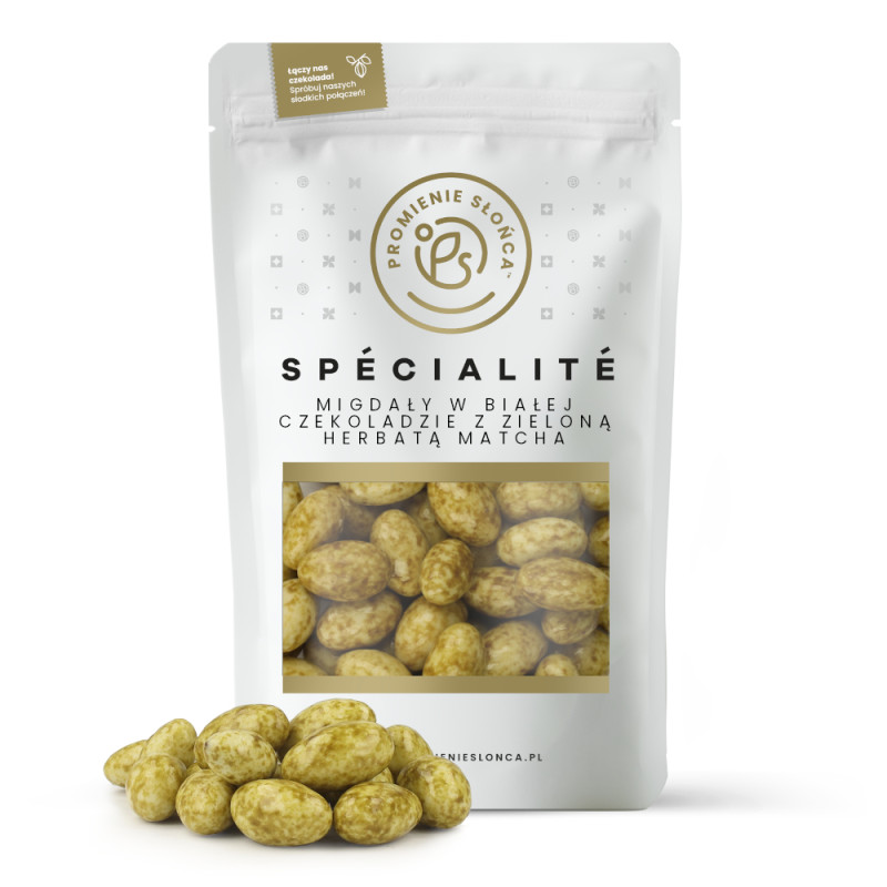 Migdały w białej czekoladzie z zieloną herbatą Matcha 200 g