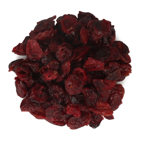 Nasza żurawina jest pocięta na mniejsze kawałki, dzięki czemu łatwiejsza do wykorzystania na przykład w kuchni.