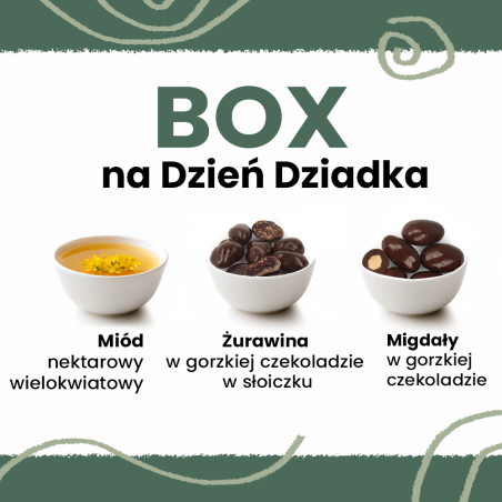 Z okazji Dnia Dziadka stworzyliśmy 3 różne rodzaje prezentów. W każdym z nich są 2-3 artykuły, w tym bestsellery uwielbiane przez nasze Promyczki. Znajdują się tu miody oraz bakalie w czekoladzie. Z pewnością odkryjesz wśród nich coś idealnego dla bliskich.
