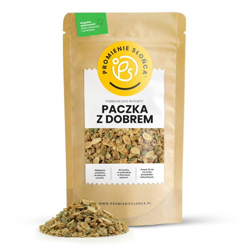 Nasza granola ma przyjemny orzechowy smak. To idealna opcja dla zabieganych osób na szybkie śniadanie. Jest to też smaczna i zdrowa przekąska na przykład do pracy czy szkoły.