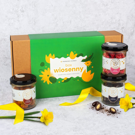 Zestaw wiosenny to BOX, który od razu przynosi na myśl ciepłe, słoneczne dni. To idealna opcja prezentowa na każdą okazję, czy też bez okazji. Z pewnością taki pyszny upominek Cię nie zawiedzie, a piękne opakowanie może samo w sobie być ozdobą pokoju.